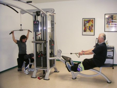 In unserem 120 qm großen Fitness und Rehasportbereich, der mit den neuesten Geräten ausgestattet ist, bieten wir u. a. nachfolgende Therapieformen an: